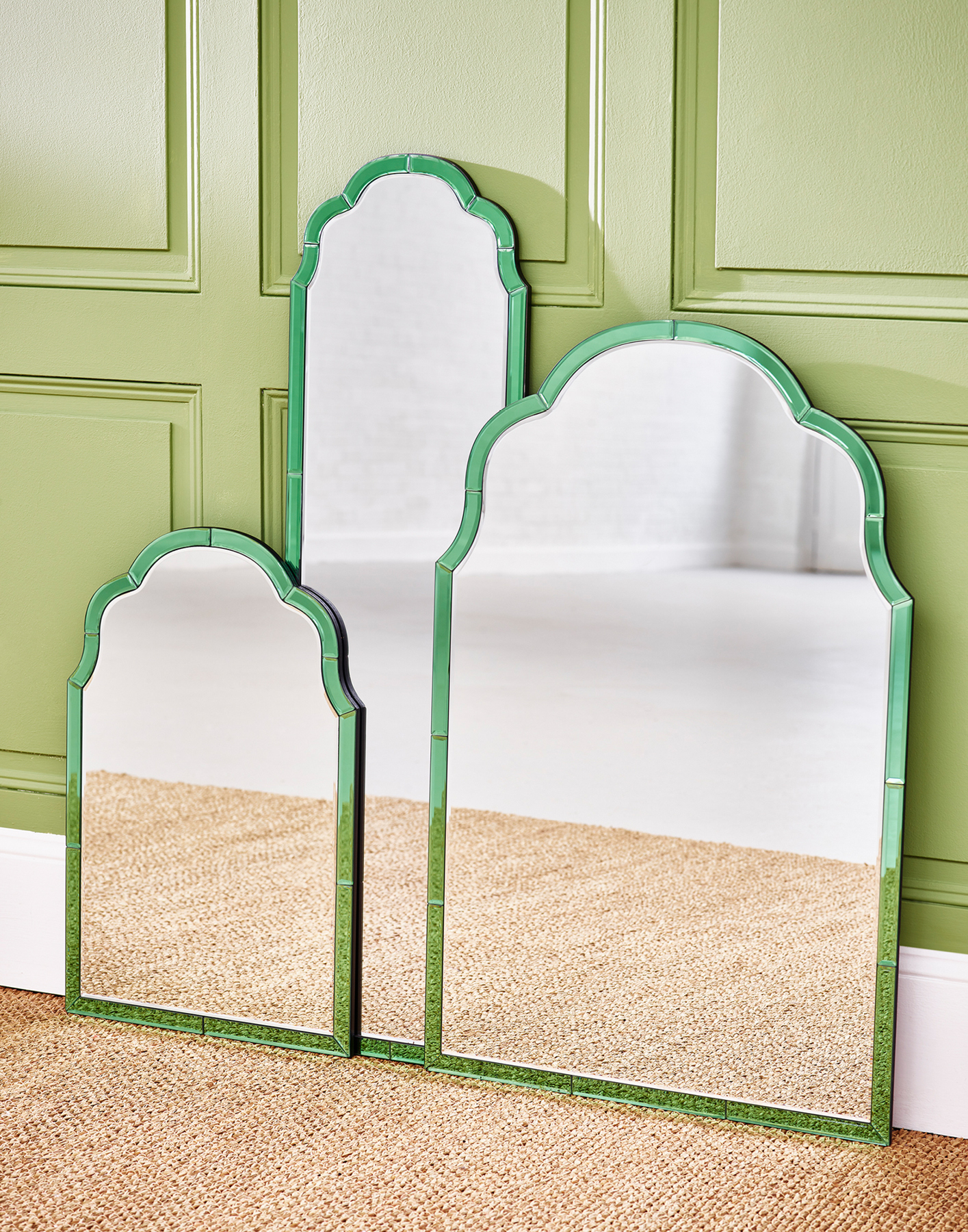 Why not splash out on a statement piece for that someone special with this fantastic Art Deco-inspired mirror with emerald green bordered glass panels. Aurora green glass mirror, £125, oliverbonas.com
