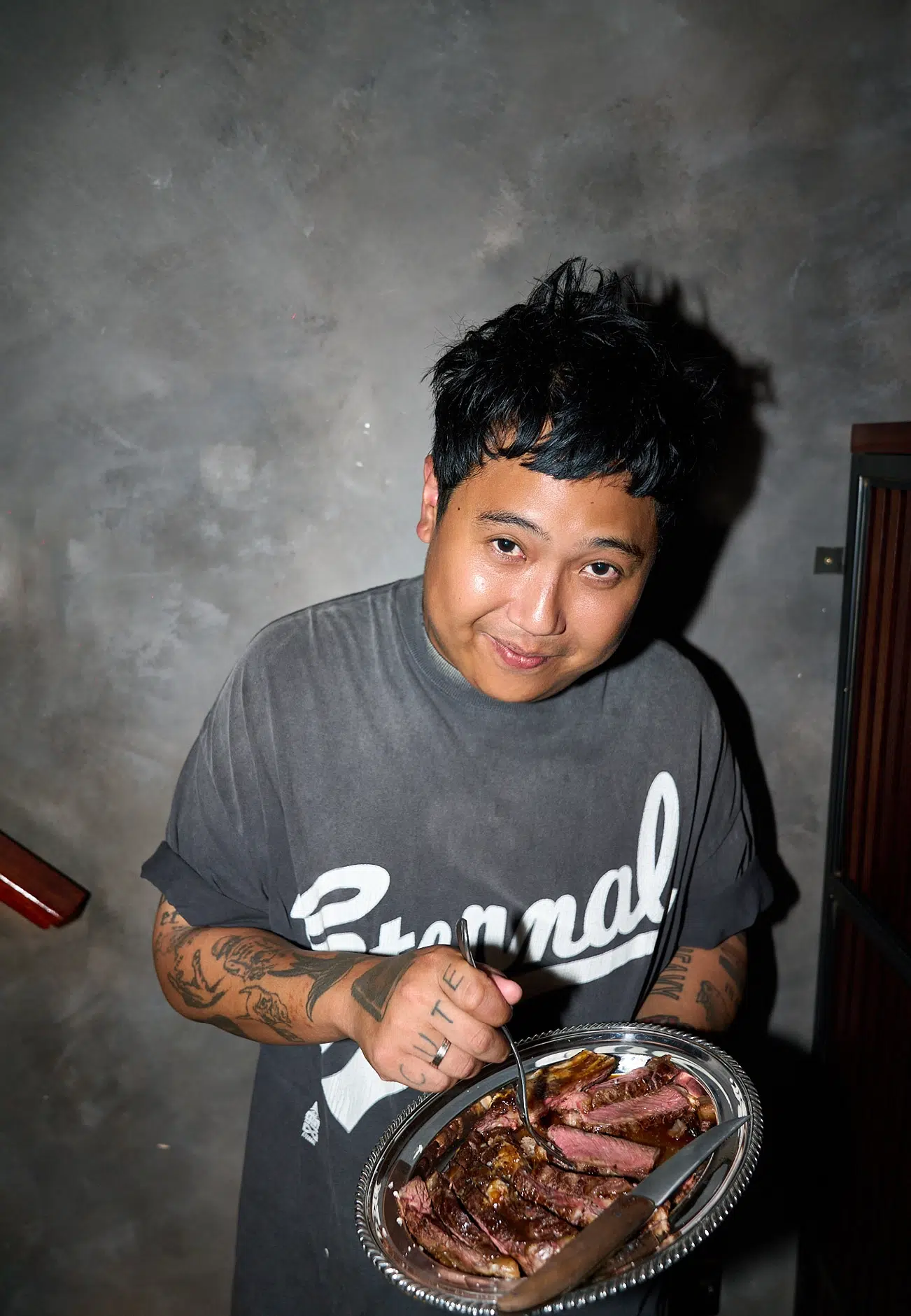 There’s also beef tartare, which is lighter and fresher than your usual beef tartare, scarlet chunks of beef piled with dashi-infused agar and doused in an oyster emulsion. Smaller bites follow the same formula. I devour a few pork-and-prawn-stuffed olives, before being distracted by the flatbread: flame-blistered and with the kind of buttery, stringy pull that influencers would go mad for on Instagram.