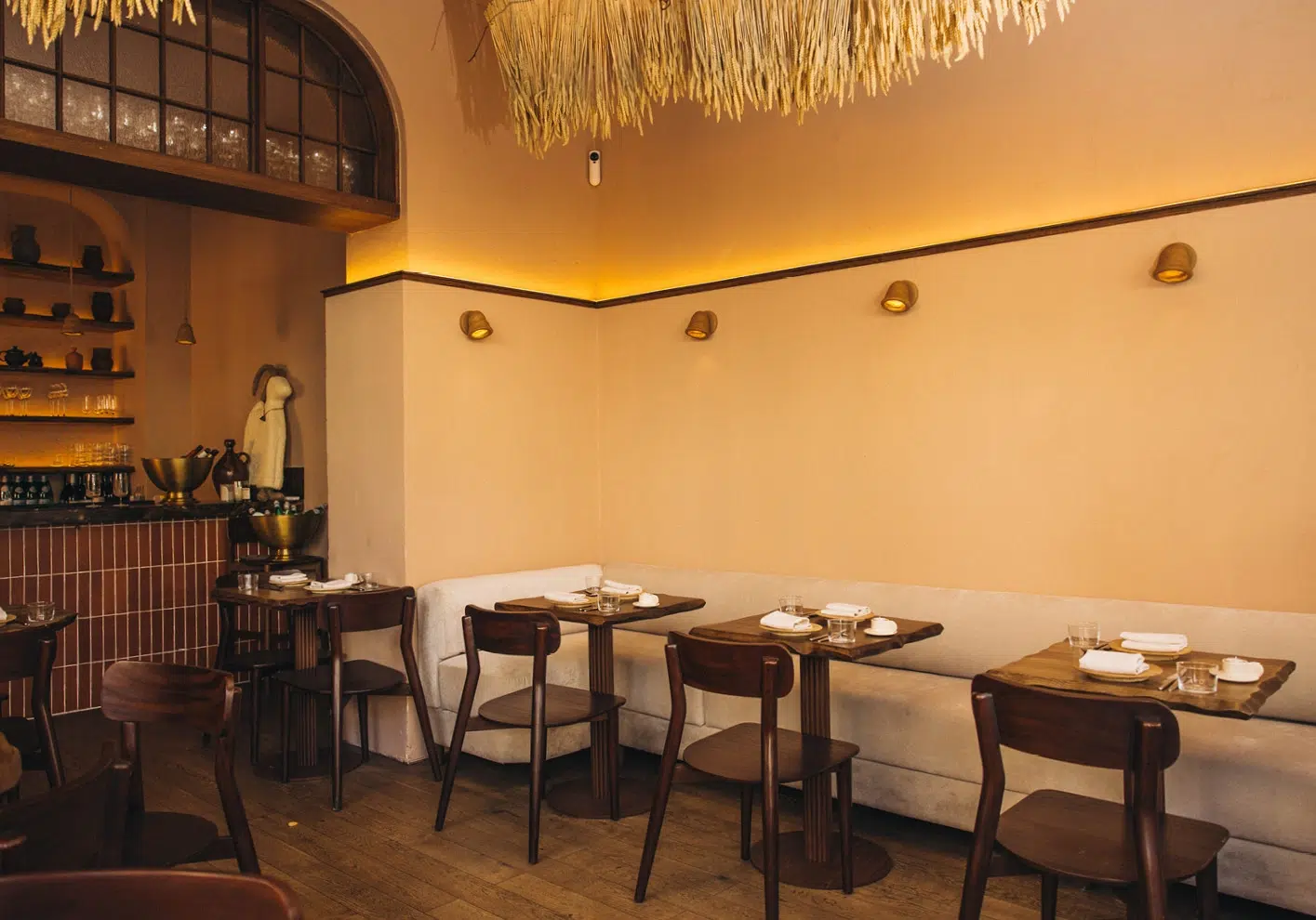 There are a few new Ukrainian restaurants appearing in London right now, but none with an approach as refined as Sino. It exudes fine dining from every Ukrainian clay-carved corner: the walls are soft and sloping, as though hewn by hand; a spiral of dried hay hangs from the ceiling (a nod to the decorations used in Ukrainian festivals); and handmade earthenwares are arranged above a small, striped bar. The overall effect is of being in a very fancy taverna – as though a babusya with impeccable taste has just slipped into the back.