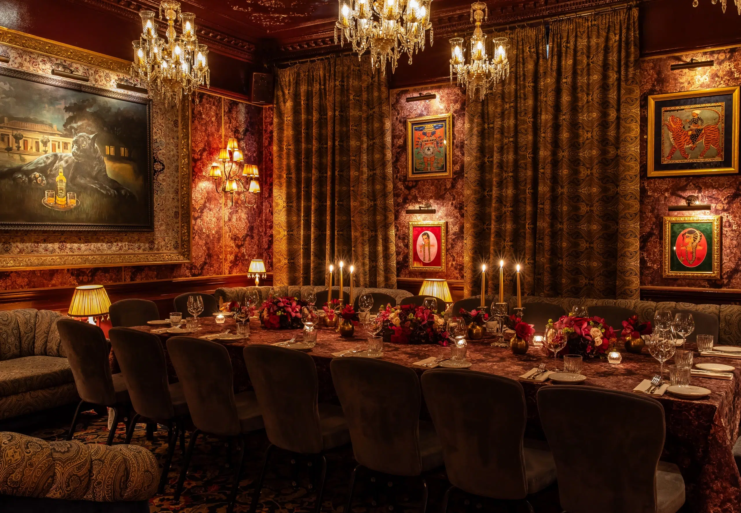 You’ll know Gymkhana as the double Michelin-starred Indian restaurant in Mayfair. But you might not know 42, Gymkhana’s opulent cocktail bar secreted above the main restaurant (and accessed by its own private entrance). The best way to describe it, as Brummell’s Holly Quayle wrote in her review, is a ‘playful clandestine cocoon’: it is a place of patterns and portraits and plush textures. But here’s the cool bit: you can hire 42 as a private dining room for 16 – meaning you get this maximalist den all to yourself.