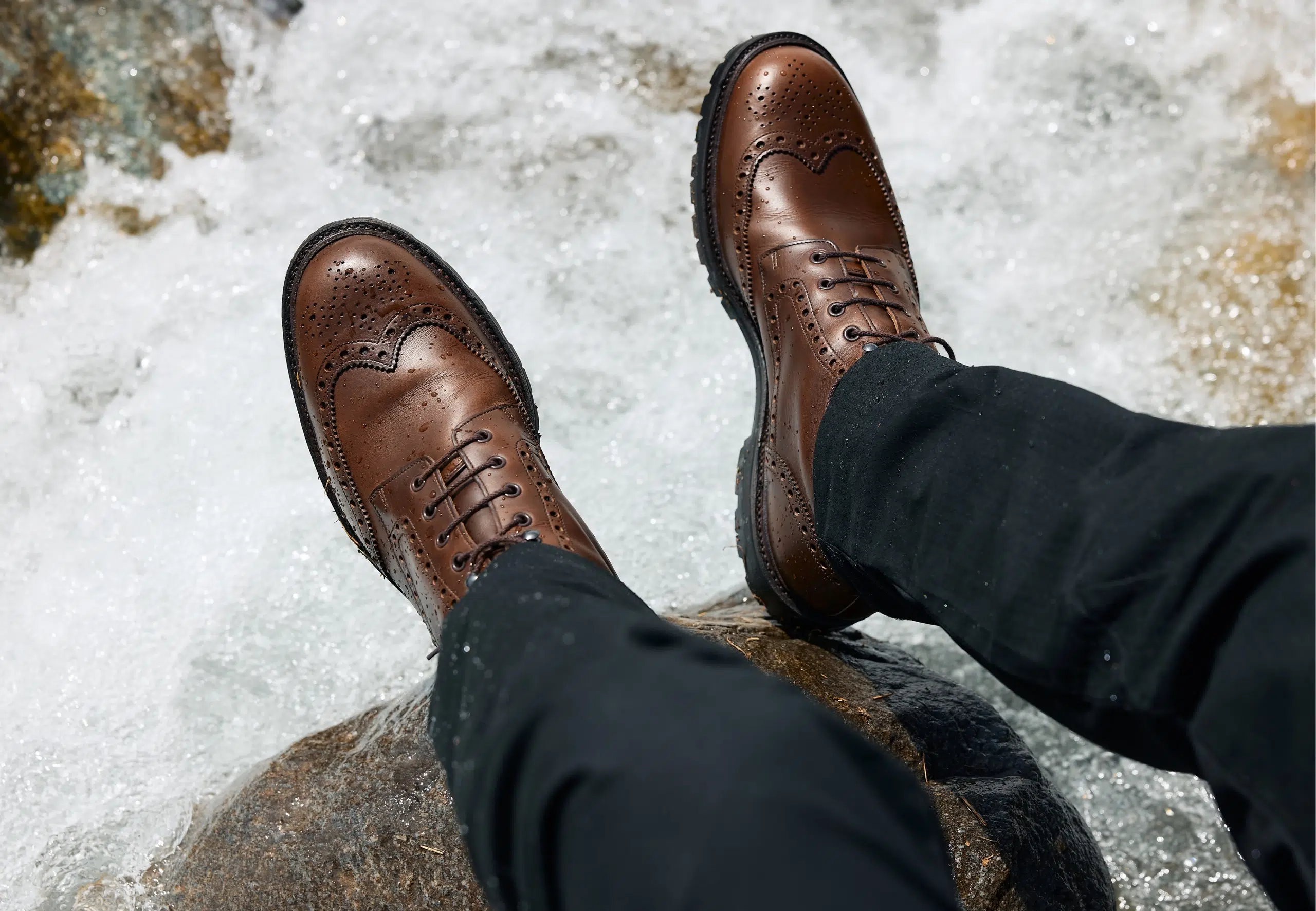 ‘We were able to experience a variety of conditions, from rocky boulders, wet meadow grass and streams to lakes, gravel tracks and snow,’ says James Fox, head of marketing and ecommerce at Crockett & Jones. In other words: if they can hack that, they can definitely handle your commute.