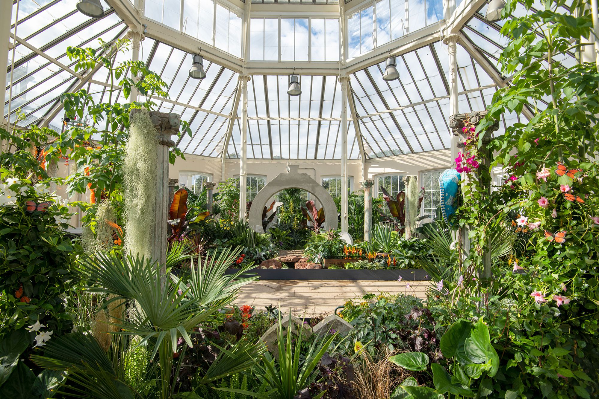Betsabeé Romero’s Day of the Dead installations in Mexico City and beyond have become legendary. Here in the Temperate House, the largest surviving Victorian glasshouse in the world, she has installed a giant chandelier shaped like the Quincunce pattern (four leaves around a central heart) an ancient symbol of humanity’s close bond to the natural world. In addition, she has added a second installation, The Altar, inspired by the Mayan festival Hanal Pixan, which allows visitors a chance for quiet reflection.