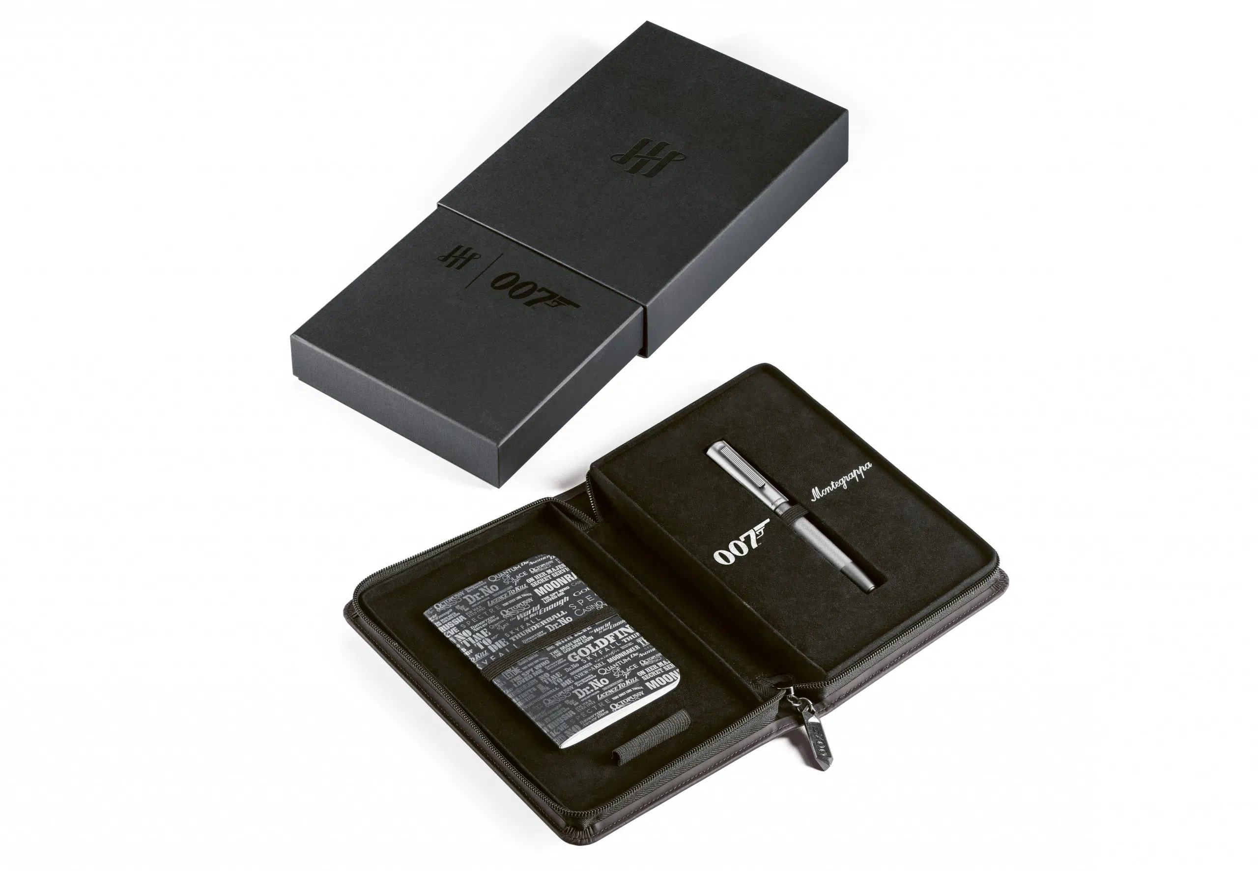 Each pen is accompanied by a 007 notebook and zip case