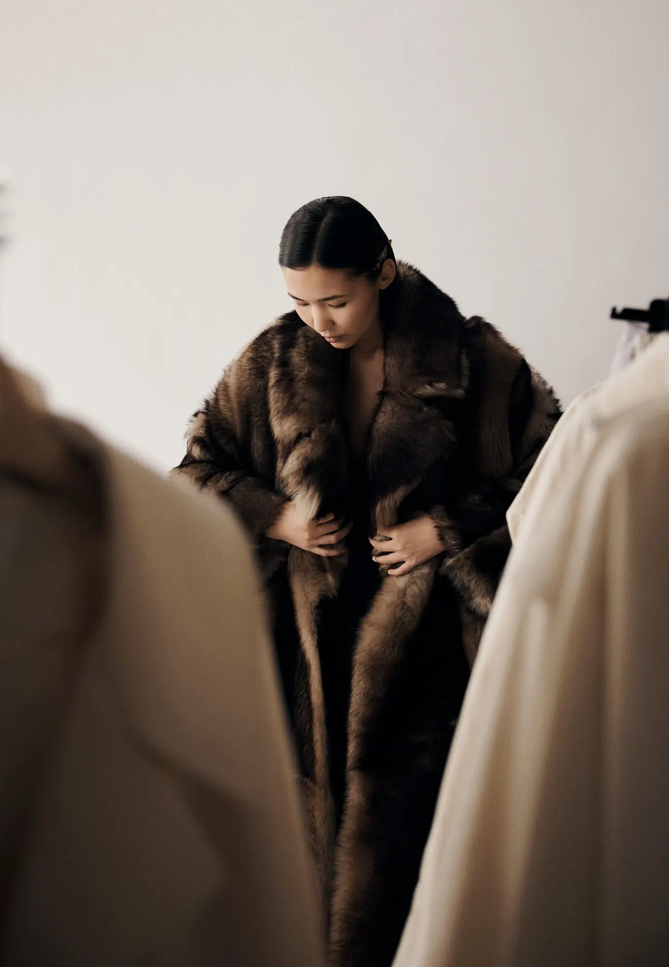 The autumn/winter 25 collection showcases ‘a long, fluffy, wild shearling in burnt brown, taupe, golden whisky, forest green, beige and ivory’ alongside ‘light, shiny, soft coats and jackets, expressing Yves Salomon’s expertise’.