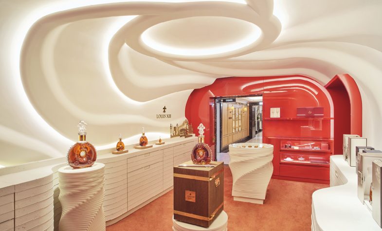 Prestigious cognac house Louis XIII has opened its first dedicated store in London, with a striking look that describes an allegory of time. The location for the exclusive store is, unsurprisingly, Harrods, and the space represents a moment in which the heritage of the brand meets a new futuristic aesthetic. Soft and winding lines on the walls, the ceiling and the furniture all echo the swirl of time. This is a defining element that reoccurs in the new Louis XIII visual identity, conceived by French architecture firm RDAI.