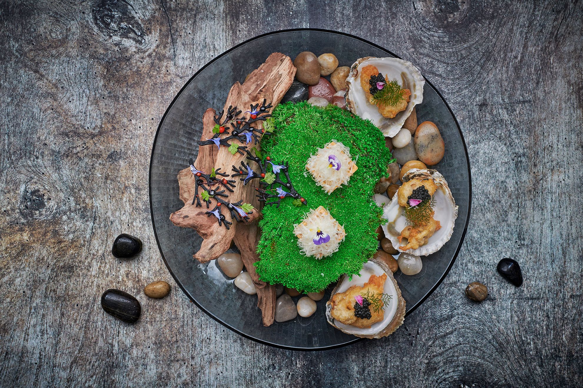 This is a fine-dining affair, with a focus on seasonal British produce. Diners can choose between a three-course menu or a seven-course tasting experience, but either option promises a memorable meal. This is not an eat-and-go scenario – every dish is accompanied by some level of wow-factor. To start, the Sea, Land and Tree canapés arrive set within a table sculpture of moss and driftwood, setting the bar high.