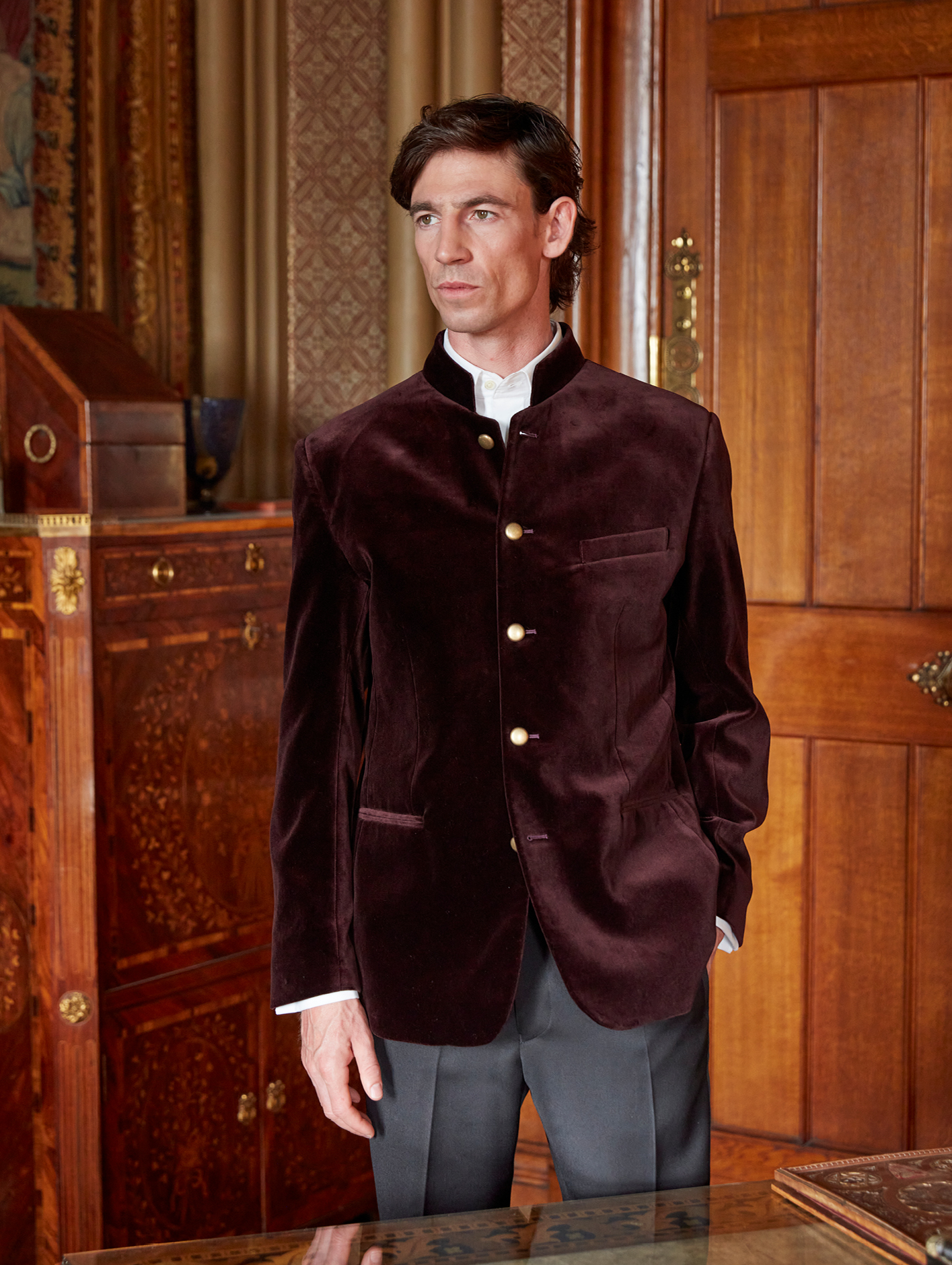 The claret velvet cotton Artist jacket from Favourbrook’s autumn 2024 collection