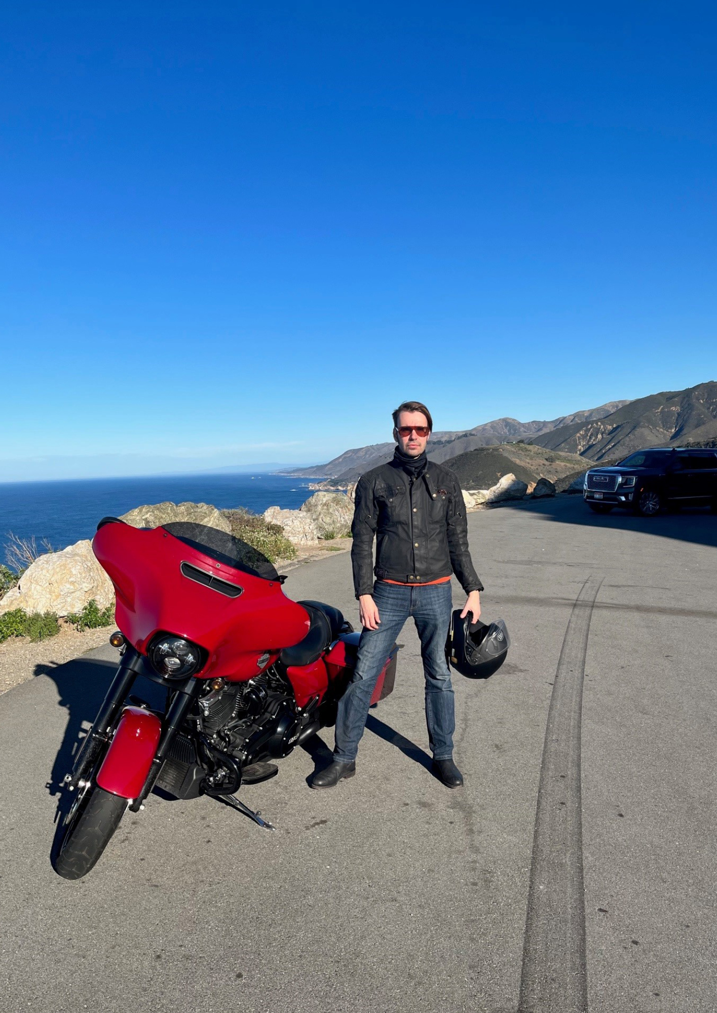 My weapon of choice for my Pacific Coast Highway ride was a red 2021 Street Glide Special, a beast of a machine with enough technology to keep you safe and bags of attitude to keep you entertained. Like a reviewer recently put it: ‘The Street Glide Special is built for adulation, and its demands are met wherever you ride it’.