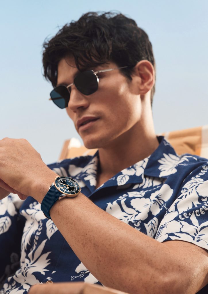 Complementing the launch is a summer-ready collaboration with Cutler and Gross, the independent British eyewear brand. Together, they’ve created a capsule collection of sunglasses that echo elements of the watch design – from arrow-tipped temples to Milanese-inspired details as a natural extension of the Superocean Heritage’s aesthetic. The sunglasses will be available at select Breitling boutiques worldwide.