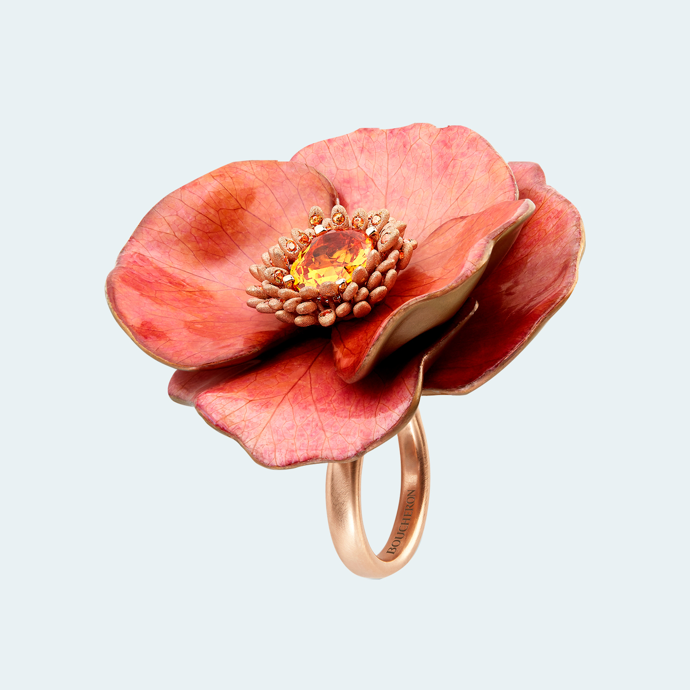 Inspired by sumptuous flowerbeds found in the gardens of the Roi Soleil at the Palace of Versailles, the details of each unique ring melds traditional savoir-faire with high-precision craftsmanship.